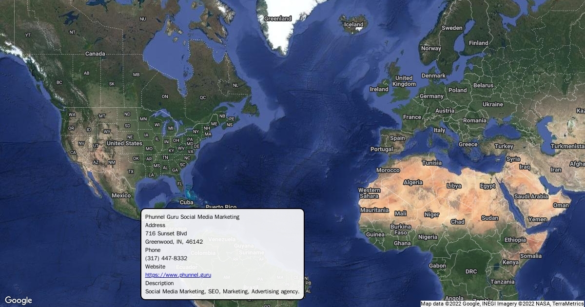 Address 716 Sunset Blvd Greenwood, IN, 46142 Phone (317) 447-8332 Website https://www.phunnel.guru Description Social Media Marketing, SEO, Marketing, Advertising agency.