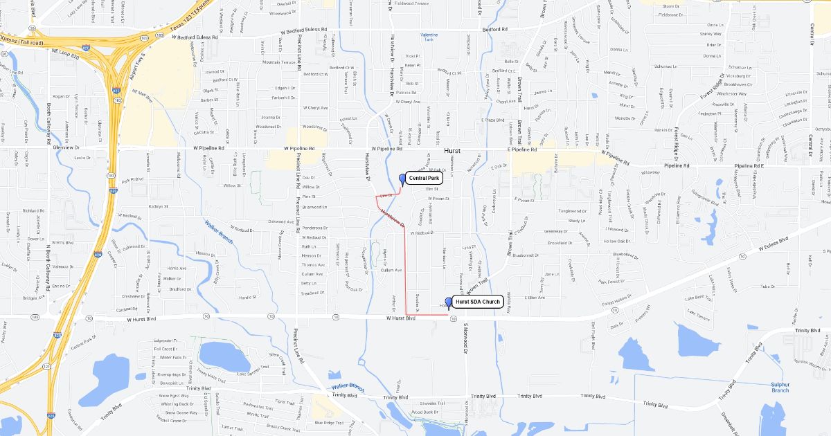 Map from church to the park
