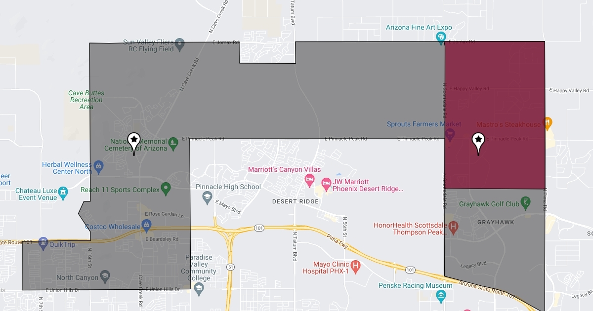 Map displaying Pinnacle Peak and Mountain Trail school boundaries