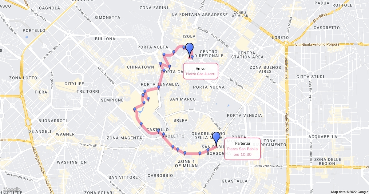 Percorso della PittaRosso Pink Parade di Milano, 25 ottobre 2015