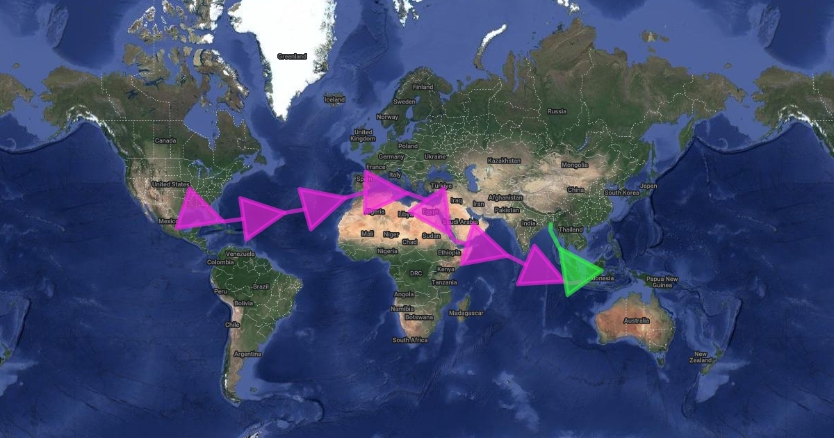 Route of cotton to Indonesia to be made into cotton-sewn into shirts in Bangladesh. Returned to United States to be consumed.