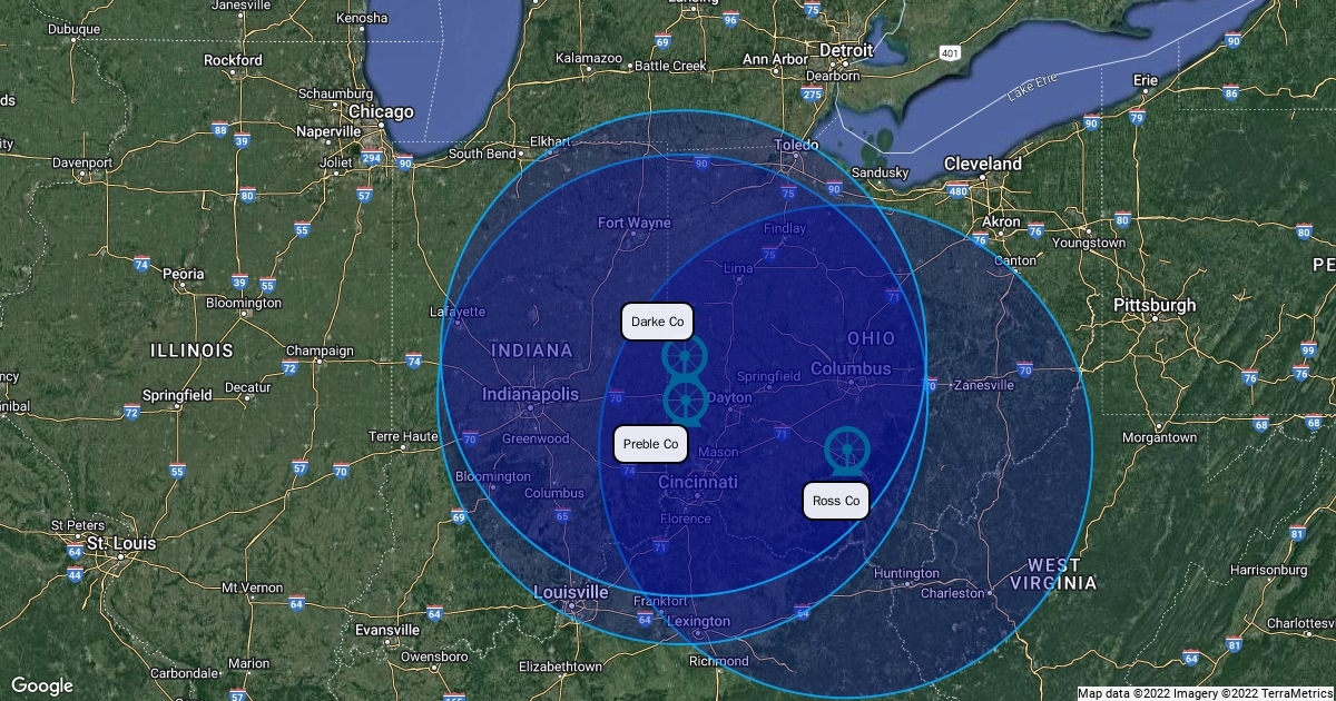 160 Mile Radius of Preble & Ross Co