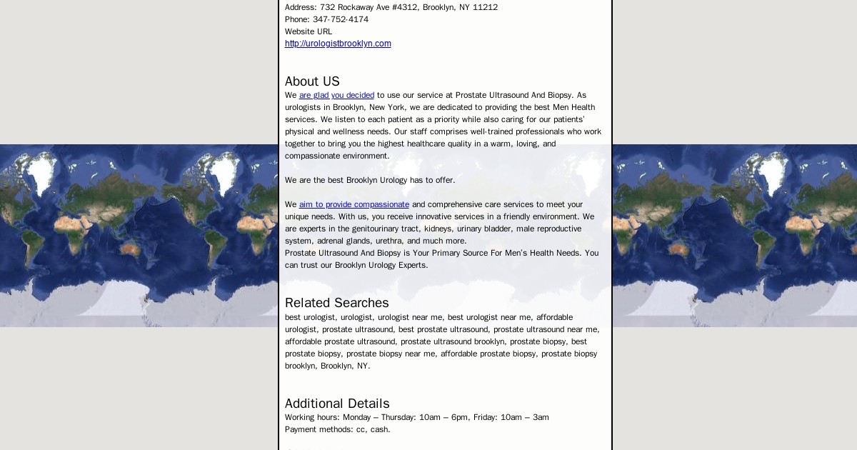 We are glad you decided to use our service at Prostate Ultrasound And Biopsy. As urologists in Brooklyn, New York, we are dedicated to providing the best Men Health services.