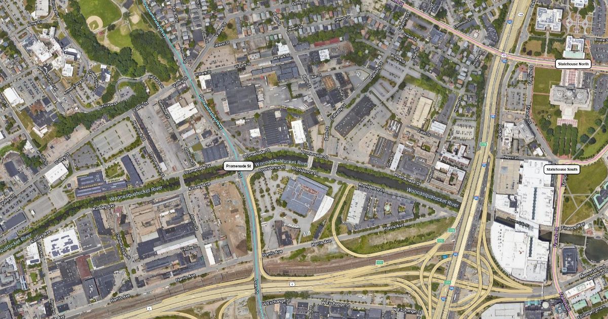 Map of potential tram service in Providence