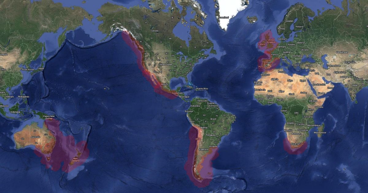 Known range of Pseudo-Nitzschia Australis