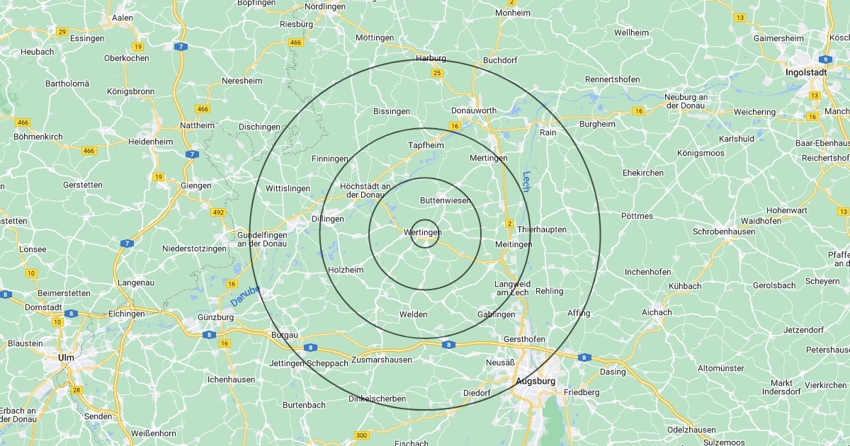 2 km, 8 km, 15 km, 25 hm