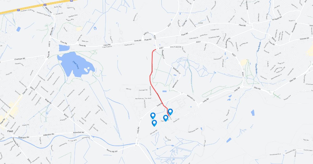 Directions from A327 to Red Car Park