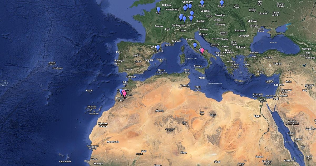 A (draft) map of all my international travels