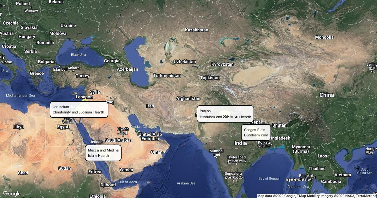 The hearths of some of the largest religions in the world