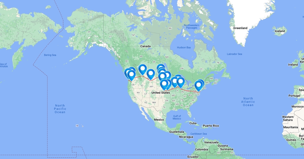 Road trip from the east coast of the US to the west coast.