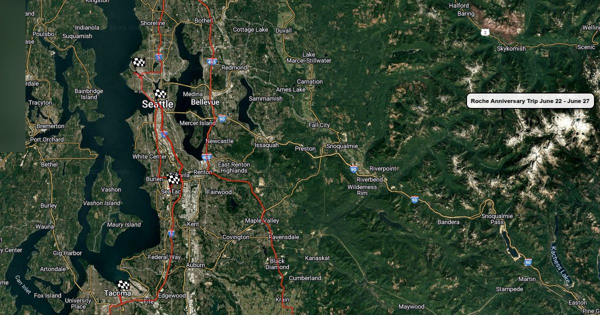 Map of our Anniversary Trip around Seattle, Olympic Nat'l Park, and Rainier Nat'l Park