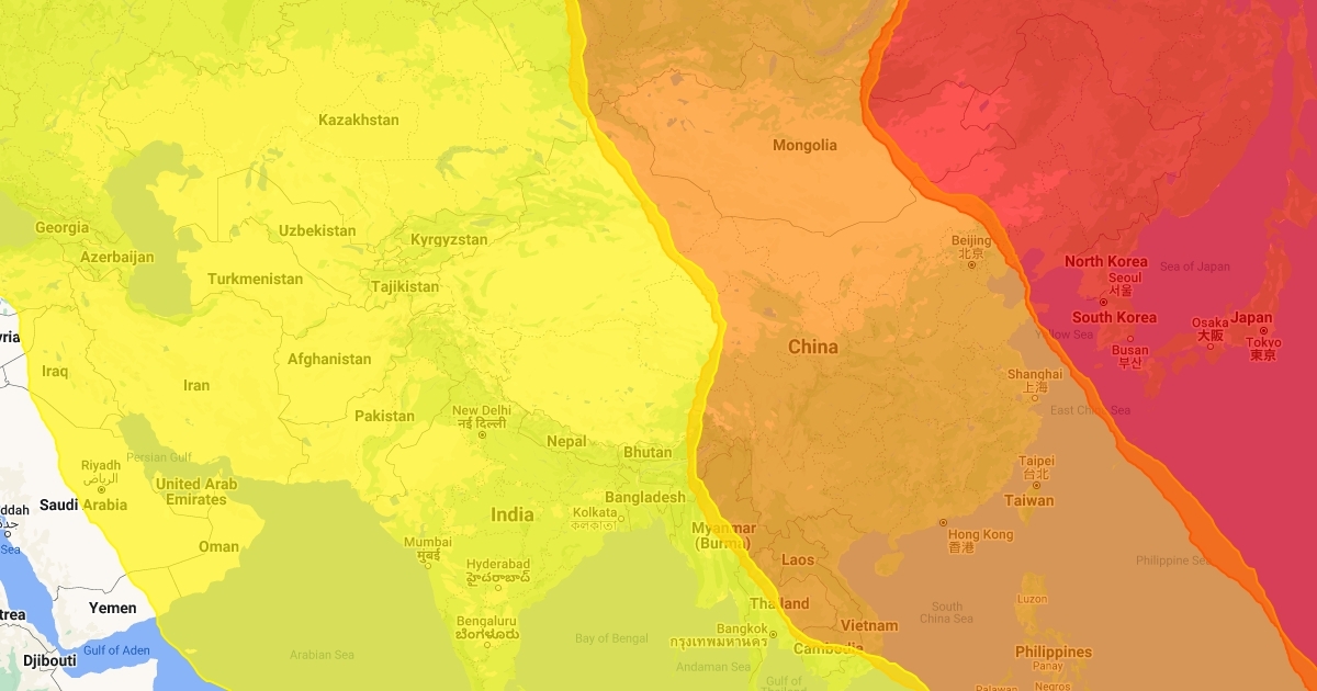 Map of affected areas of heatwave