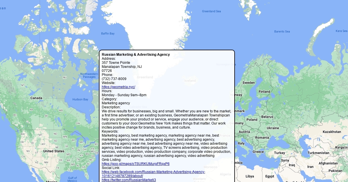 Address: 357 Towne Pointe Manalapan Township, NJ 07726 Phone: (732) 737-8009 Website: https://geometria.nyc/ Hours: Monday - Sunday 9am–8pm Category: Marketing agency