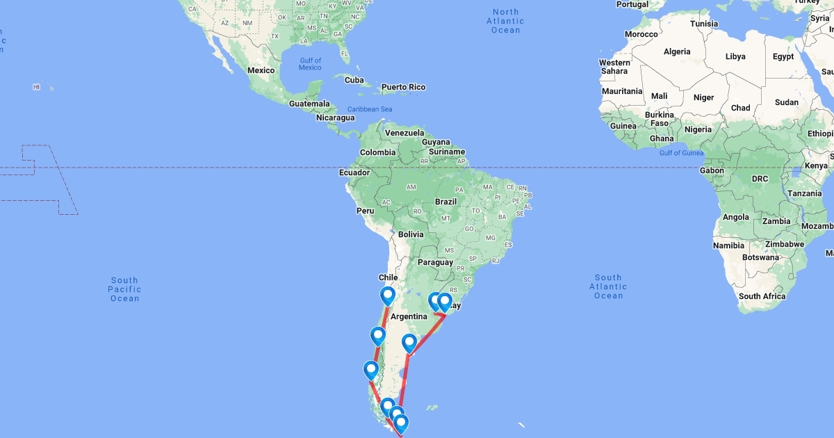 CRUISE THROUGH SOUTH AMERICA - ROUTE