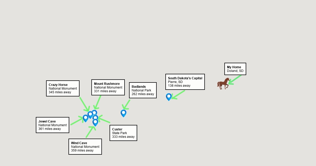 An example map that shows landmarks in SD and how far they are from where I live.