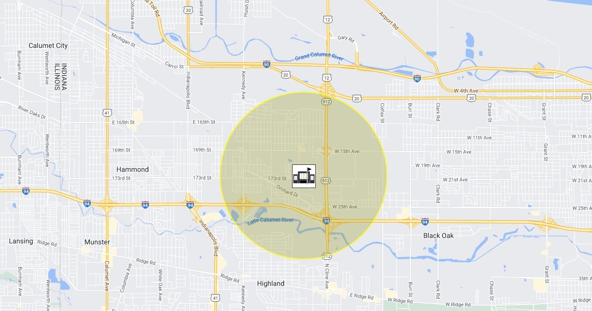 Students within the shaded circle are not eligible for SCH transportation