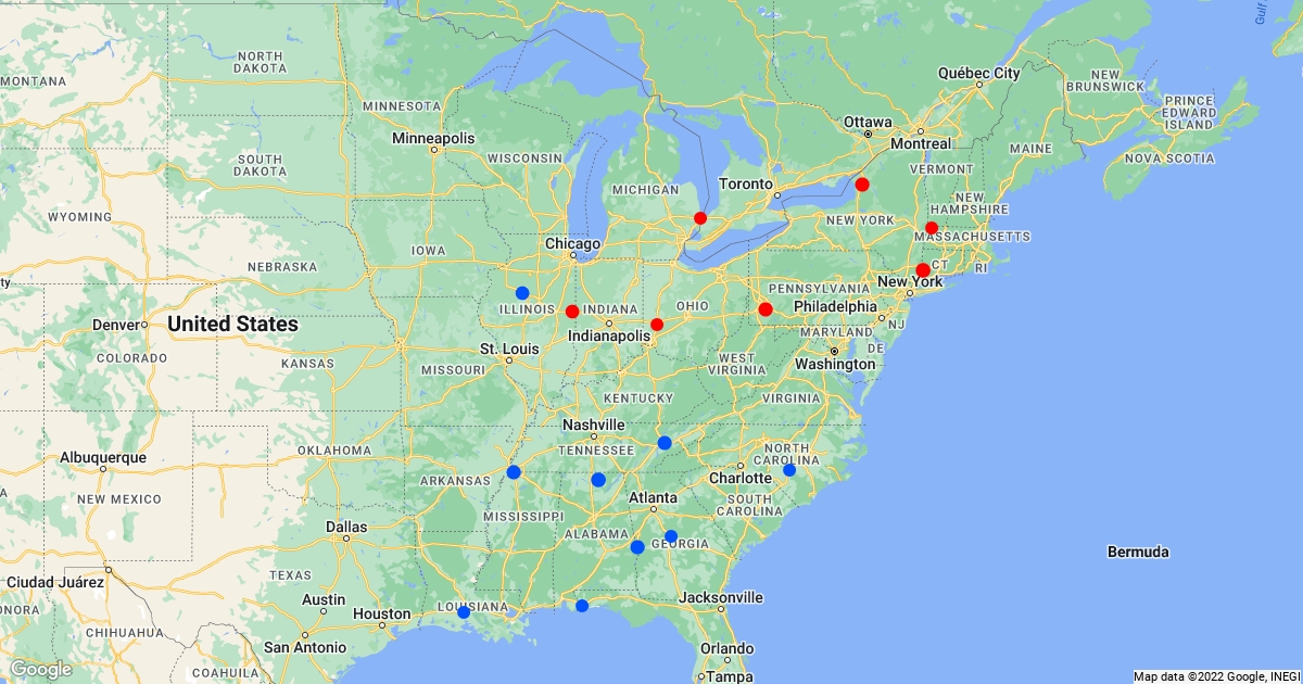 Blue = SPHL teams including Macon, who begins play in 2015 Red = FHL teams including Port Huron, who begins play in 2015
