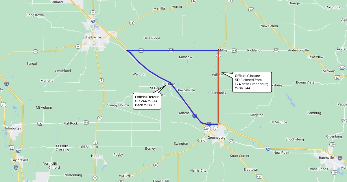 Closed I-74 to IN 244
