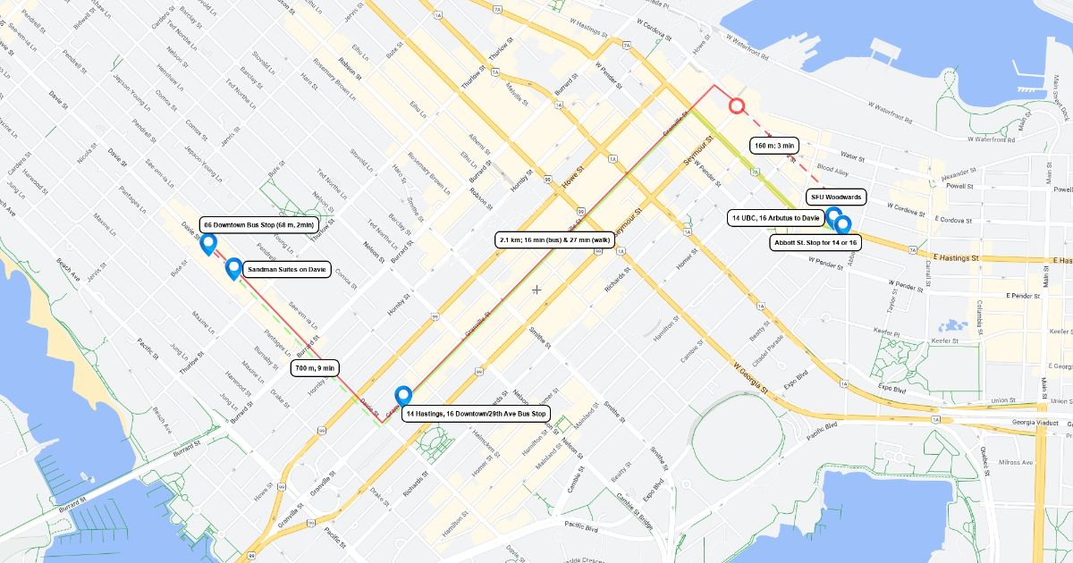 Transit options between the two