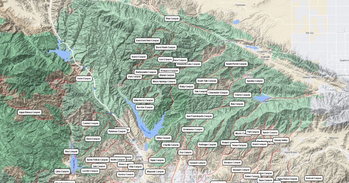 Names of canyons in and around the Santa Clarita Valley