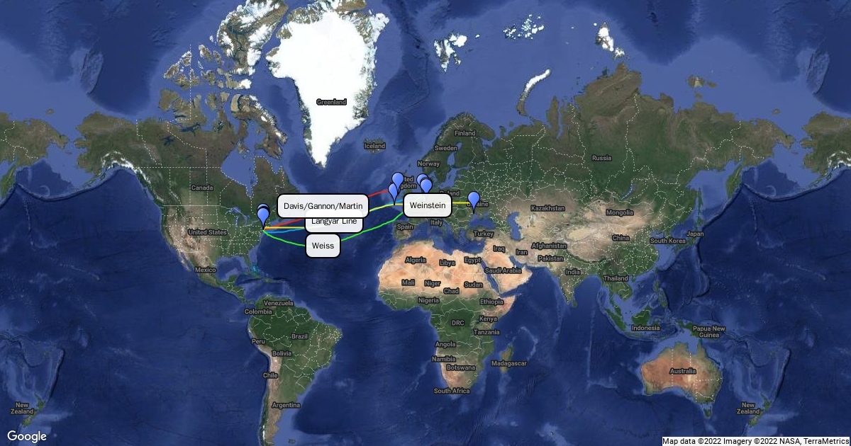 Map of Sarah Winston family migration history