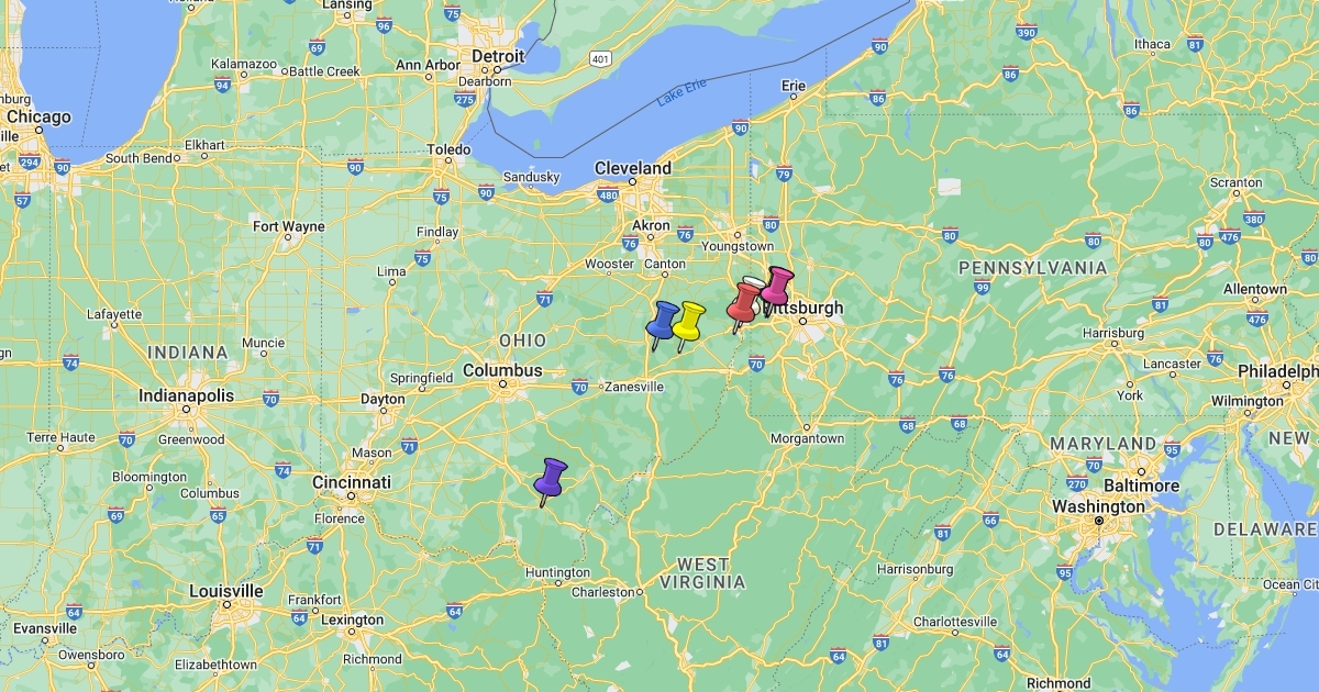 Map of Stewart dispersion in the second generation from Daniel Stewart of Robinson Township, Washington County, PA