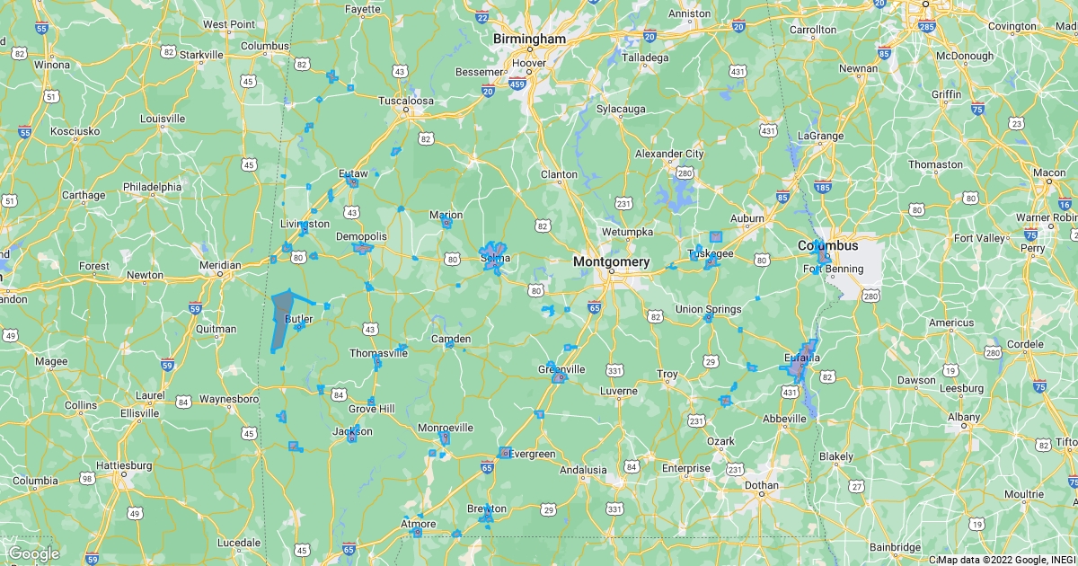 Alabama Blackbelt counties sewer service areas.