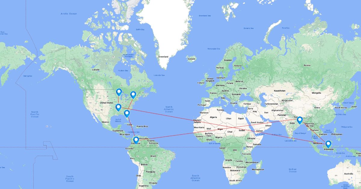 Explanation of all the countries and their functions, that are made to make shirts.