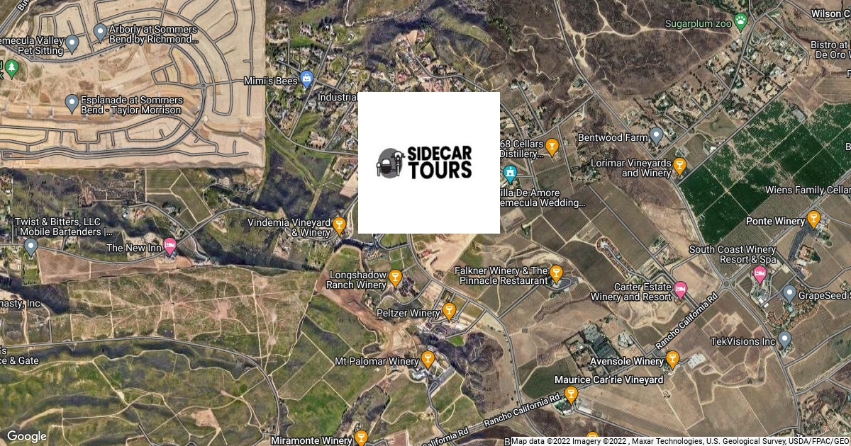 Sidecar Tours Temecula is located at 39730 Calle Contento, Temecula, CA 92591. This location is where you will depart from and return for your tour.