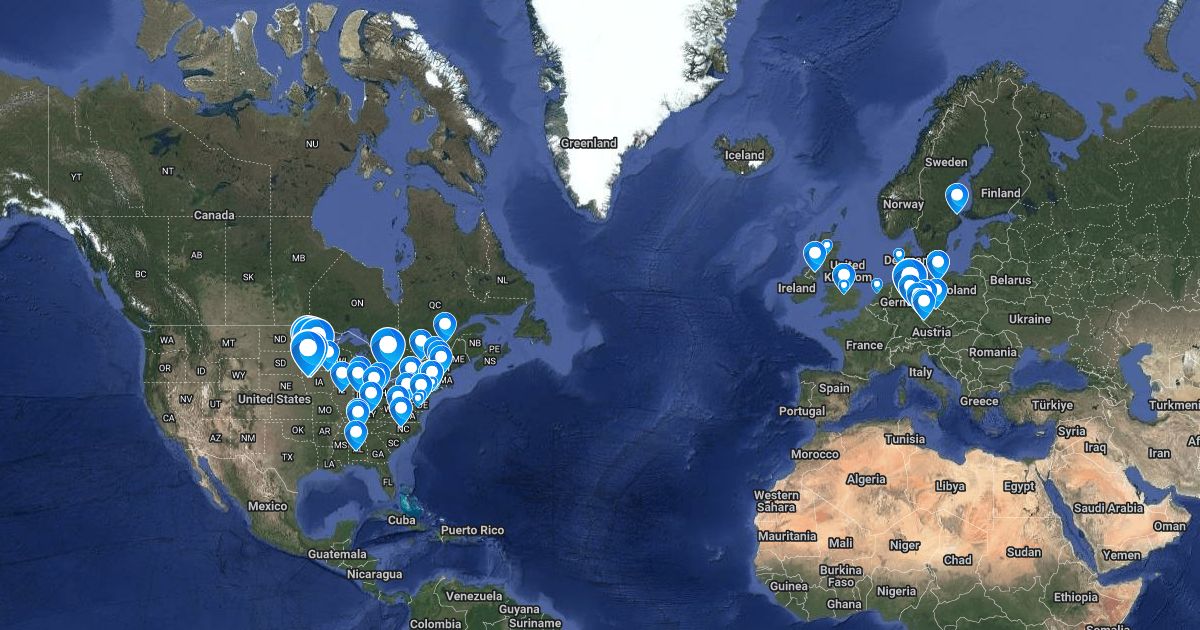 The birthplaces of 8 generations of Smiths & Danielowskis, 1709-1938.