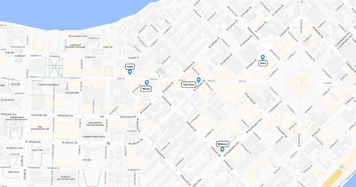 Map of cafes and restaurants on State Street, Madison