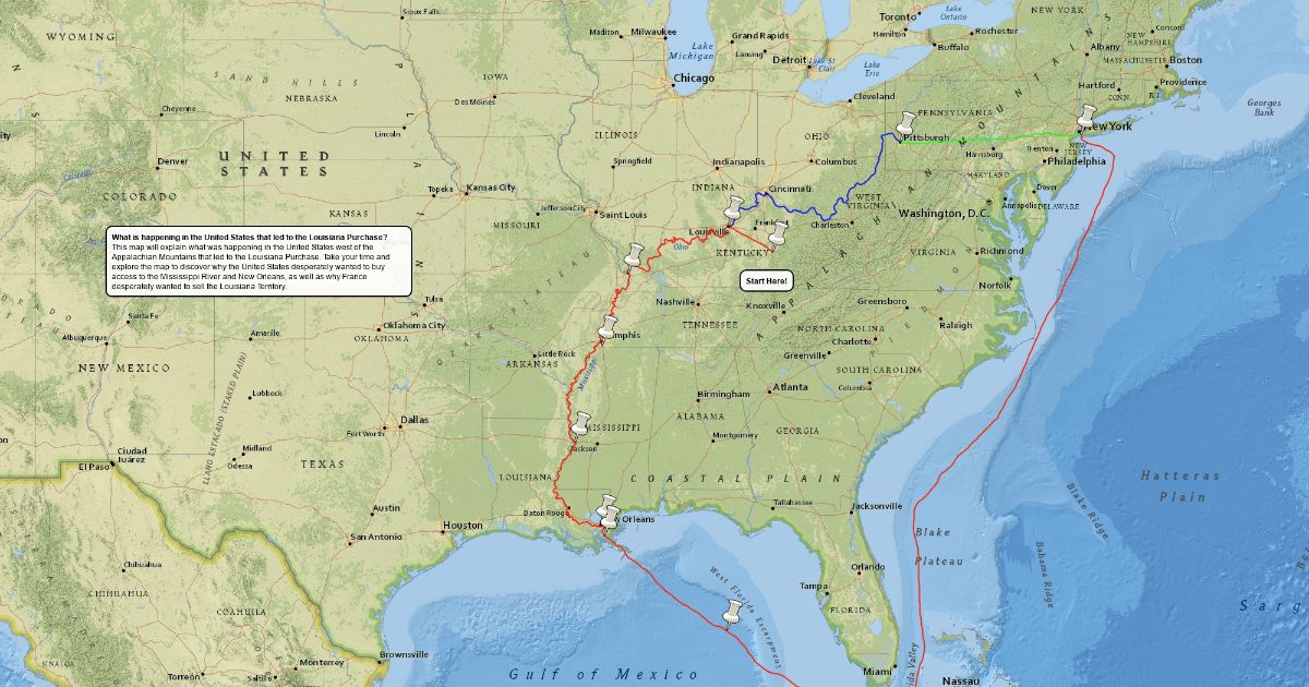 This map will help you learn about what was going on in the United States prior to the Louisiana Purchase and what led to the Purchase.