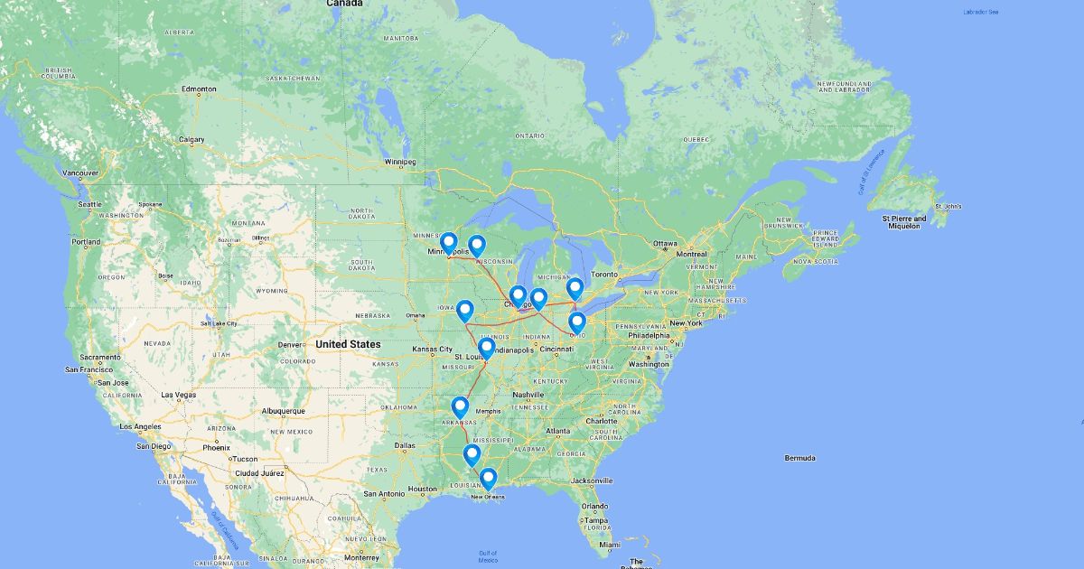 Stephen Fry goes to all the states up the Mississippi River.