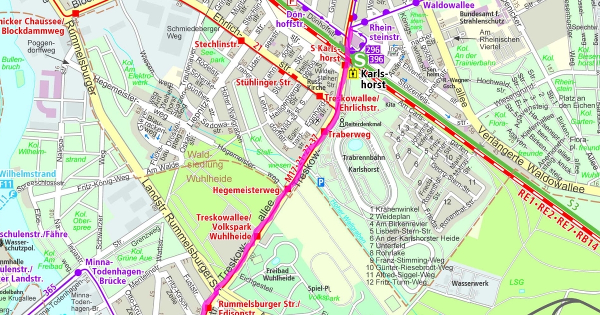 BVG Karte mit Linien und Brückenverzeichnis. Hier können Störungen u.Ä. eingezeichnet werden.