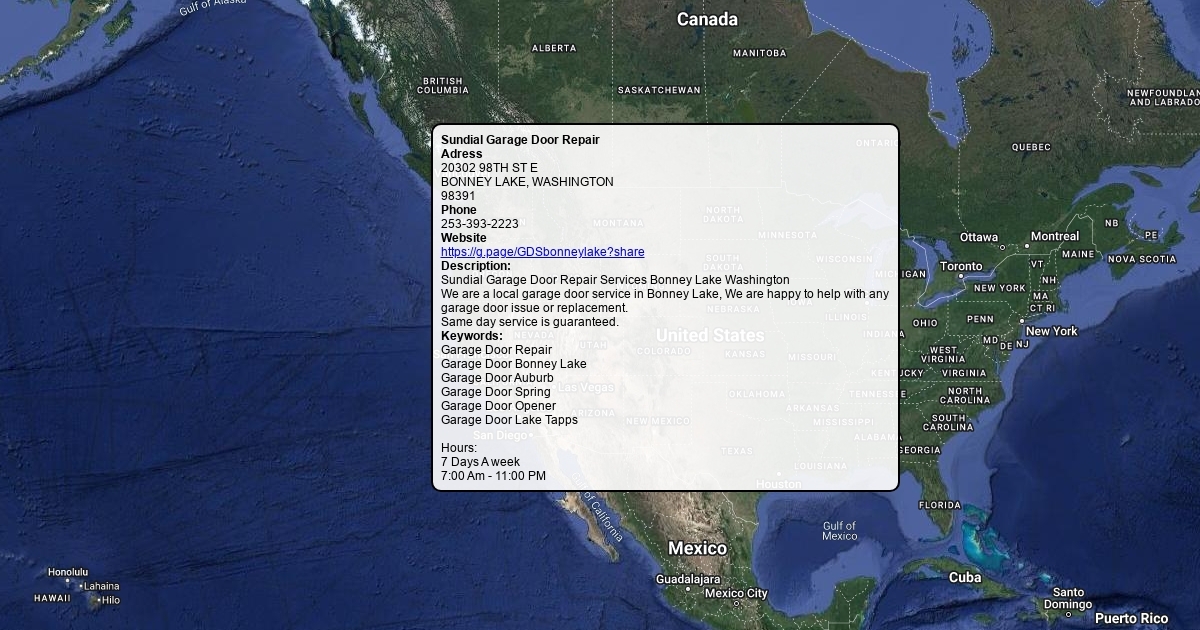 Sundial Garage Door Repair Services Bonney Lake Washington We are a local garage door service in Bonney Lake, We are happy to help with any garage door issue or replacement. Same day service is guaranteed.