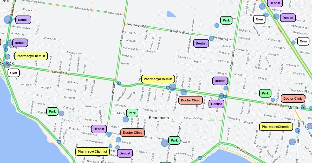 parks, doctor clinic, chemists etc..