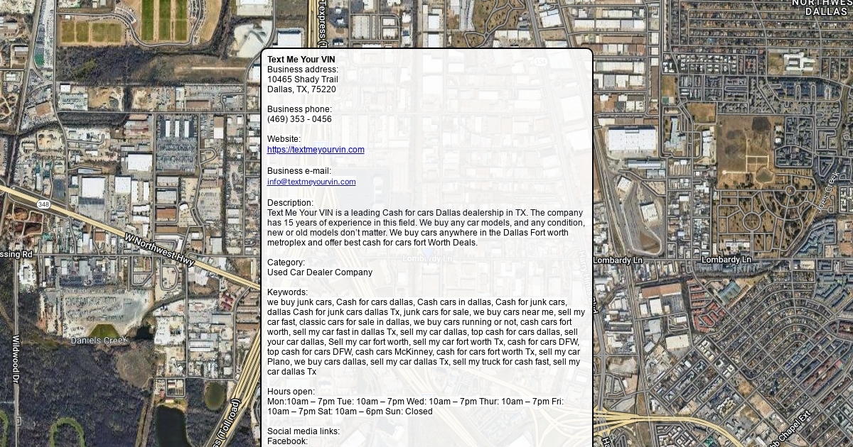 Business address: 10465 Shady Trail Dallas, TX, 75220 Business phone: (469) 353 - 0456