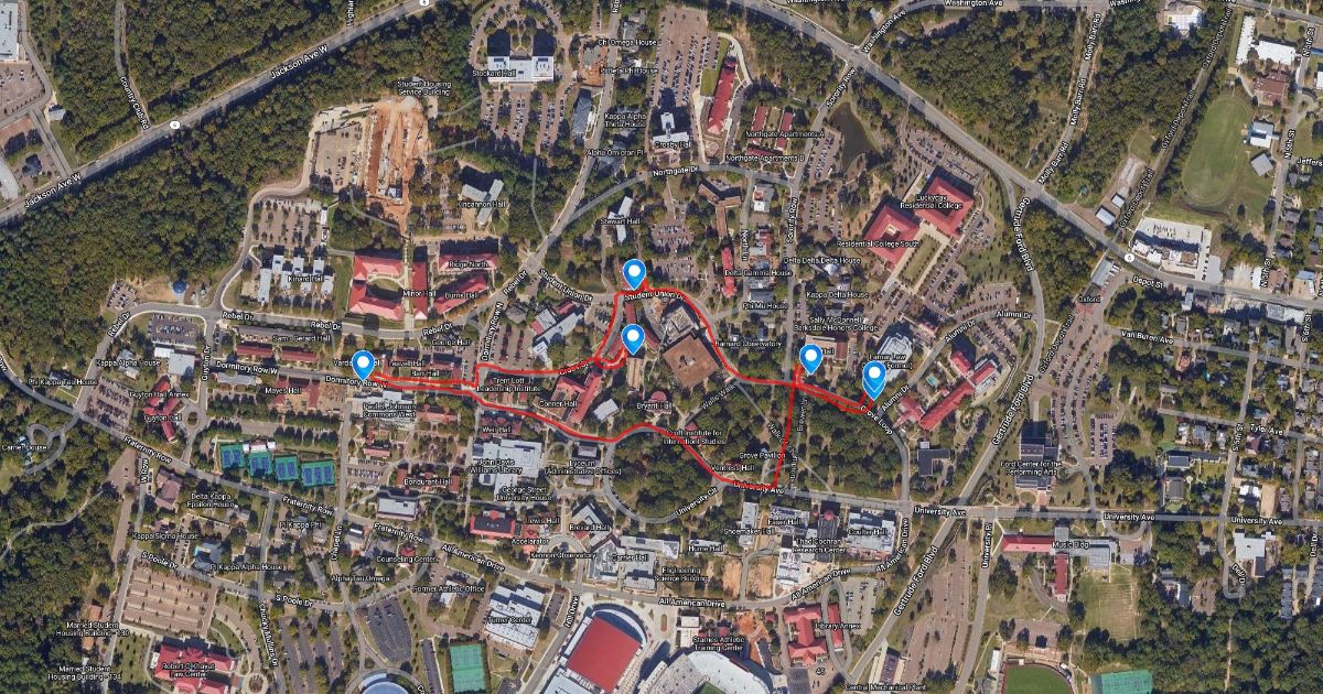 This is a map of our travels toward the investigation of the supernatural on the campus of The University of Mississippi.
