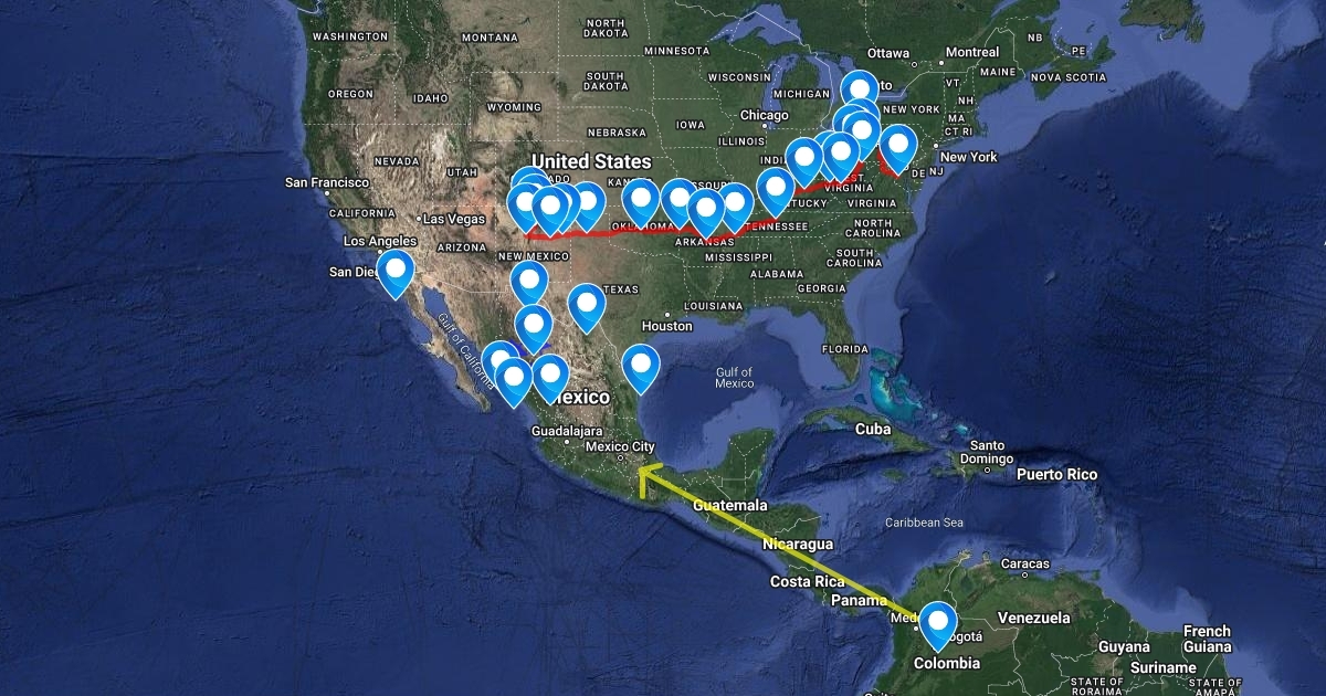Map showing the different key areas and routes as highlighted in part one of The Cartel.