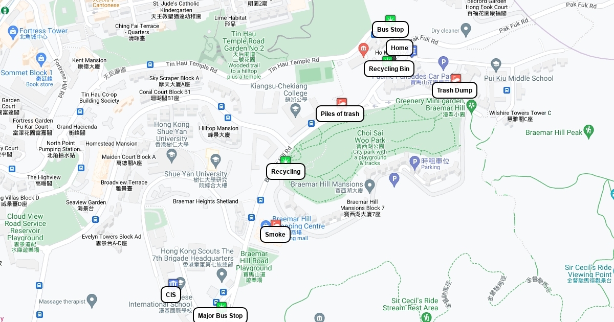 A map detailing the sustainable and unsustainable parts of my neighborhood