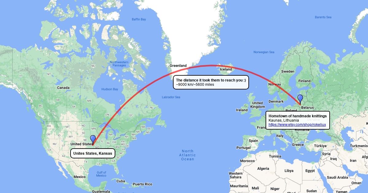 These handmade knittings started their road in a small country Lithuania and ended up as a birthday gift in your hands :) Happy birthday!