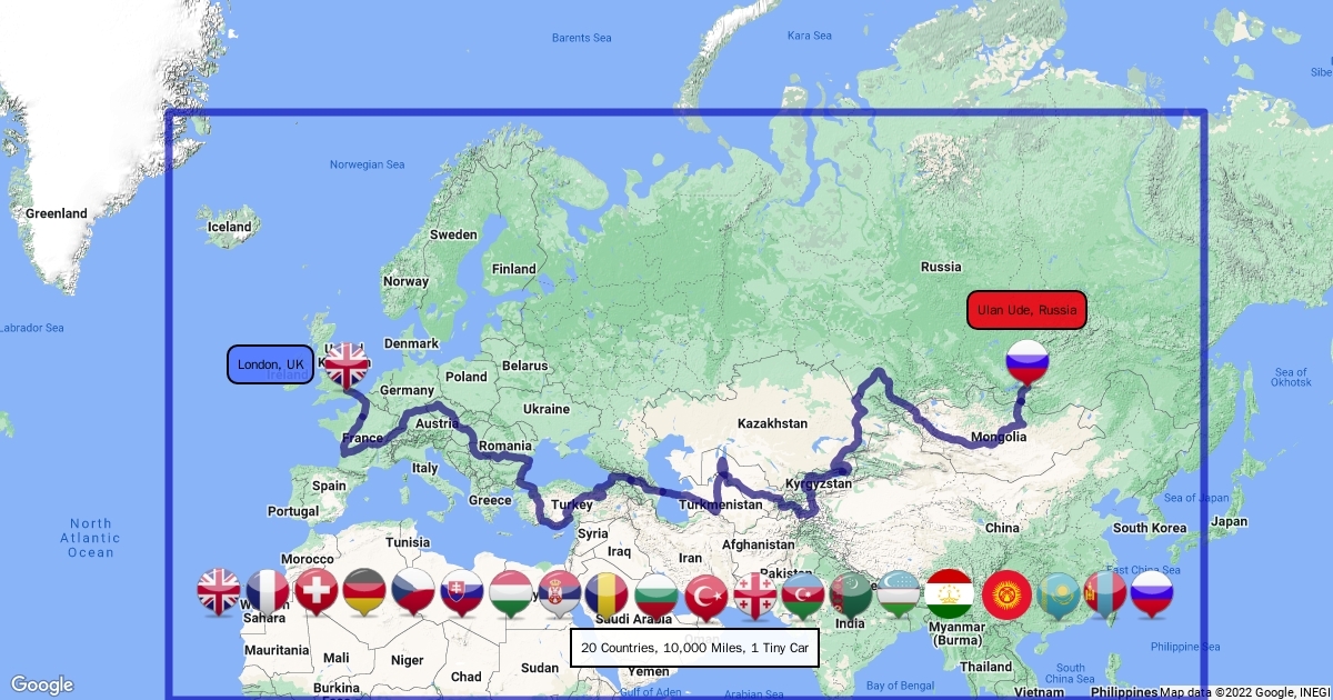 Tim's Mongol Rally 2019 Route