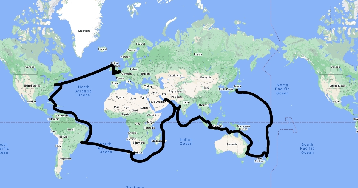 This is the map of the Titanic s route: London-Tokyo