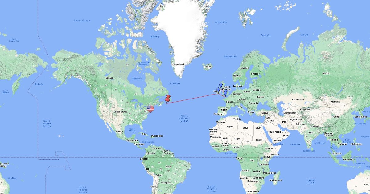 The map of the Titanic's journey