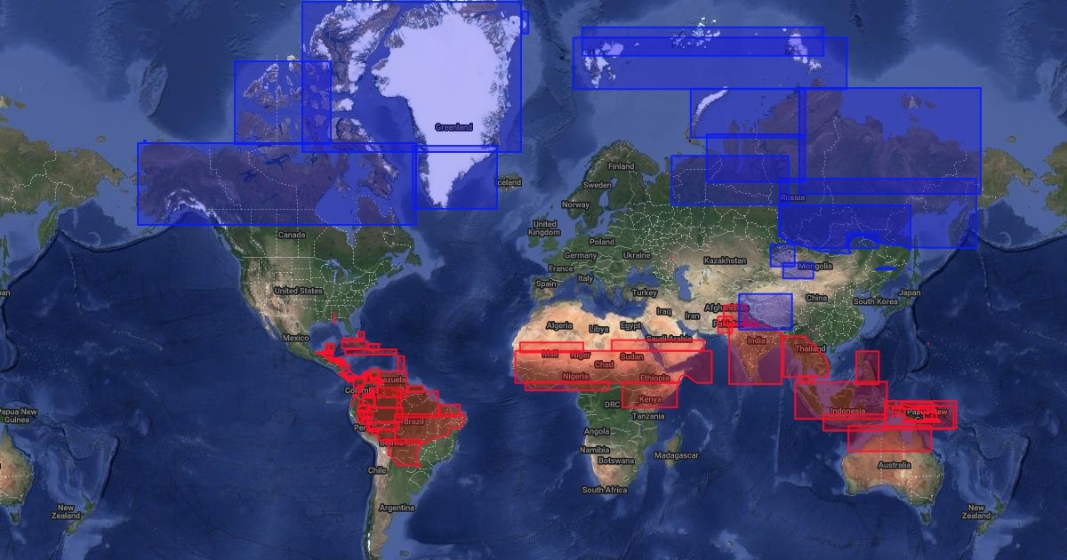 Blue= 15f or under average, Red= 80f or over average