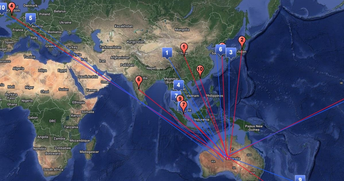 Top 10 Countries Imports and Exports to Australia (USD)