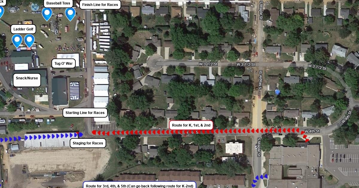 Routes, and activities for Track and Field Day