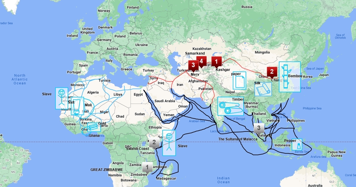 Map of African, Asian, and Middle Eastern trade routes