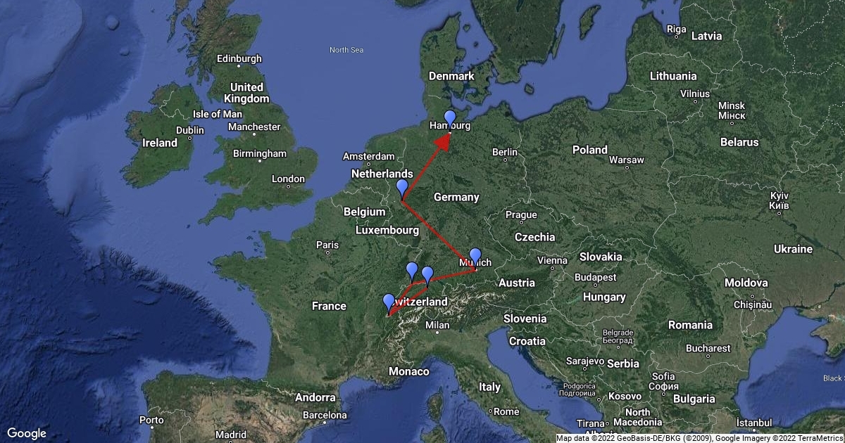 CR to Zurich Germany to Sweden Sweden to CR