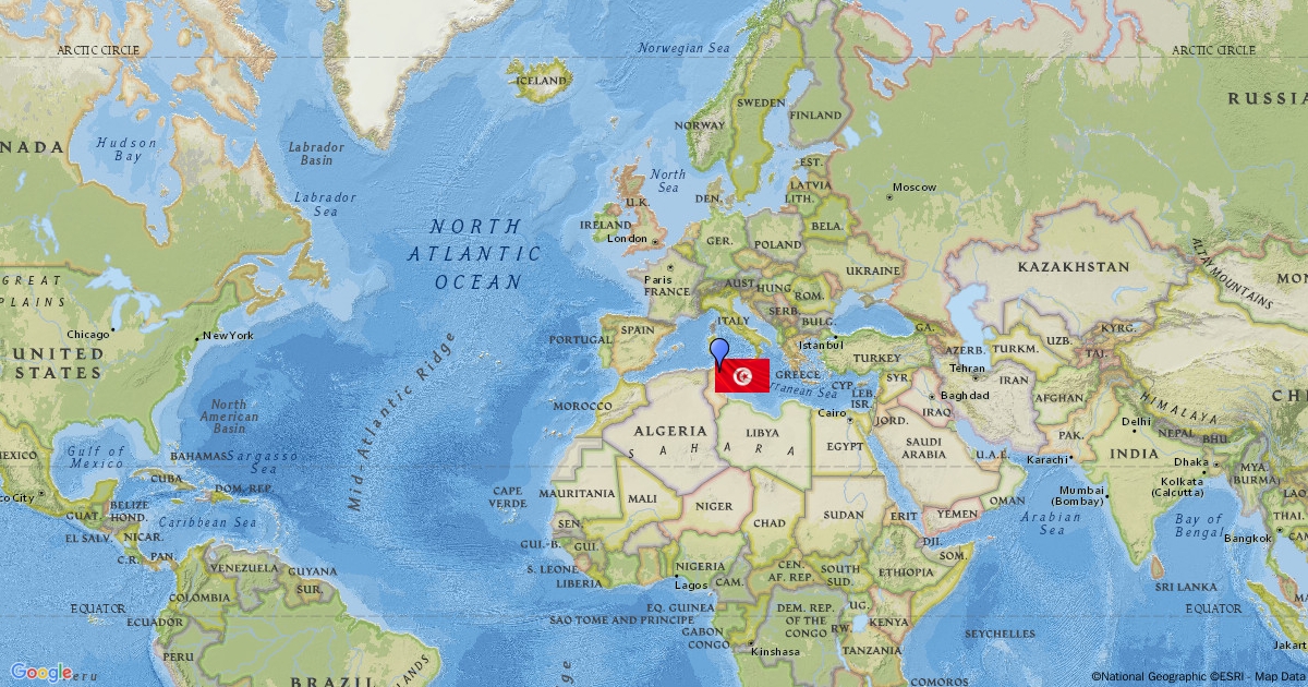 locating Tunisia on the world map